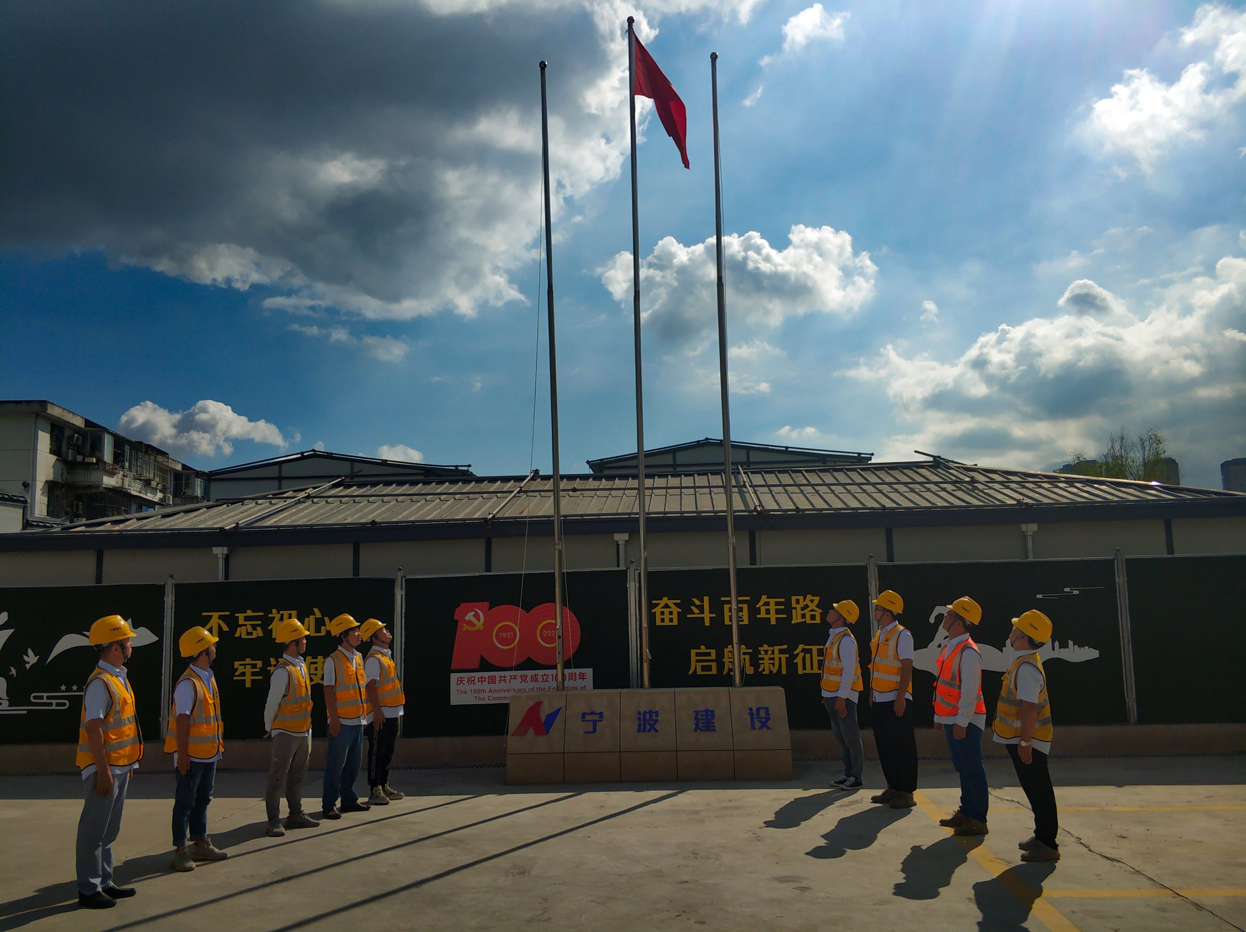 ? ? ? 10月1日清晨,隨著太陽的冉冉升起,東錢湖快速路項目部、鄞奉公園項目部的大門前舉行了莊嚴(yán)肅穆的升旗儀式。隨著《義勇軍進(jìn)行曲》的響起,鮮艷的五星紅旗緩緩上升,全體員工身著工作服和馬甲,面向國旗行注目禮,齊唱國歌,共同祝愿祖國繁榮昌盛。