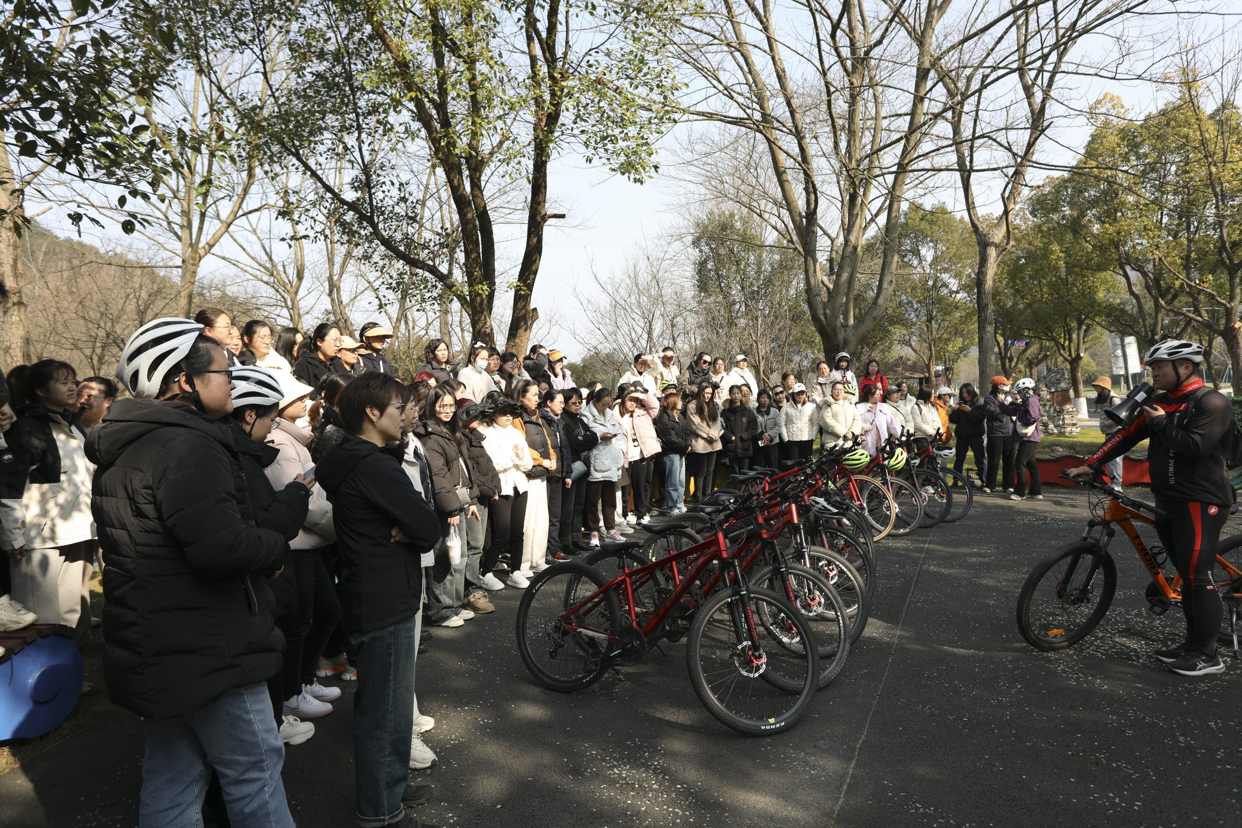 ? ? ? ?活動(dòng)當(dāng)天陽光明媚,東錢湖風(fēng)光旖旎,湖光山色連成景,人在景中,景在畫中。早上9點(diǎn),女職工們在馬山濕地騎行驛站集合,帶上騎行頭盔,聽教練講解后依次出發(fā)。