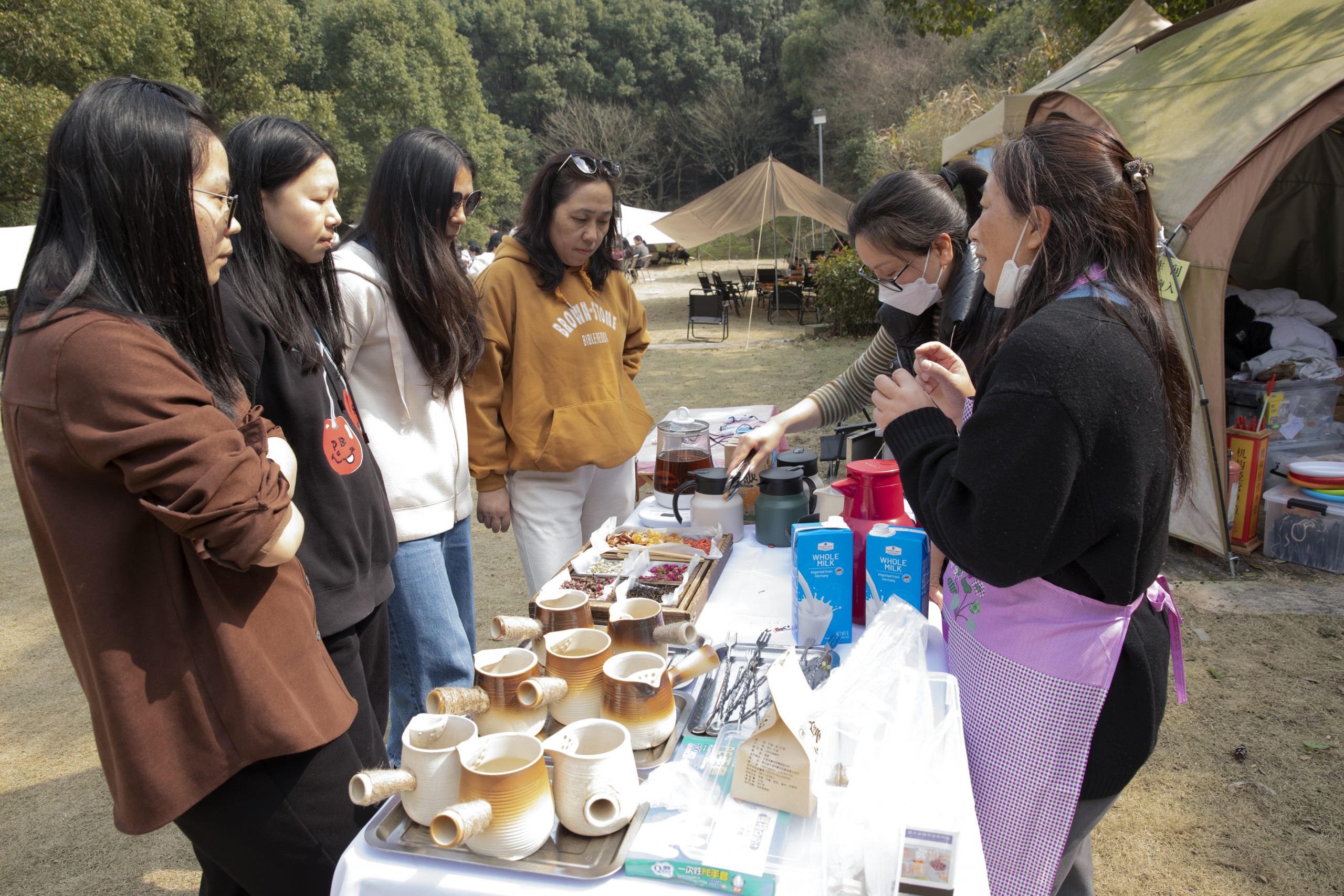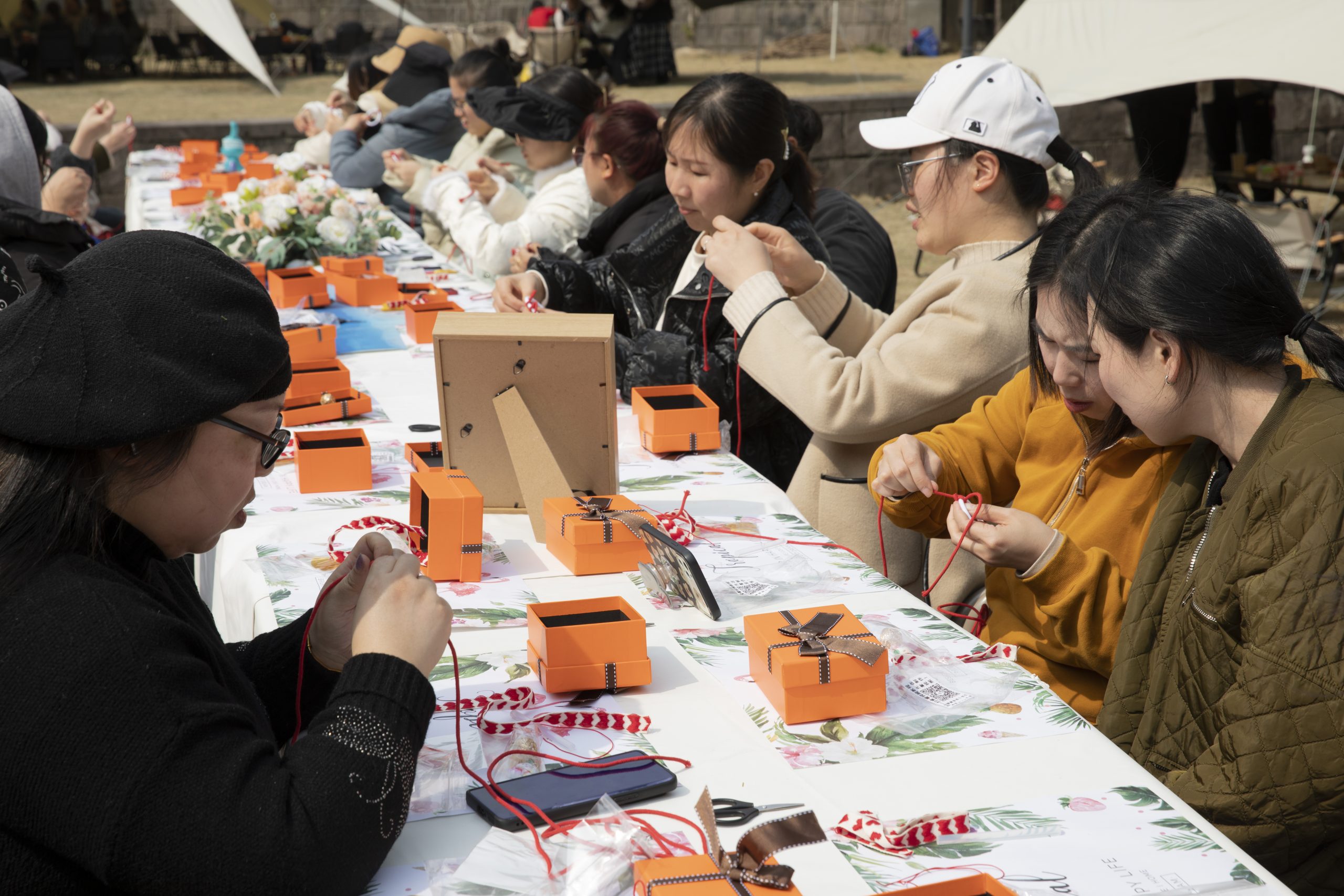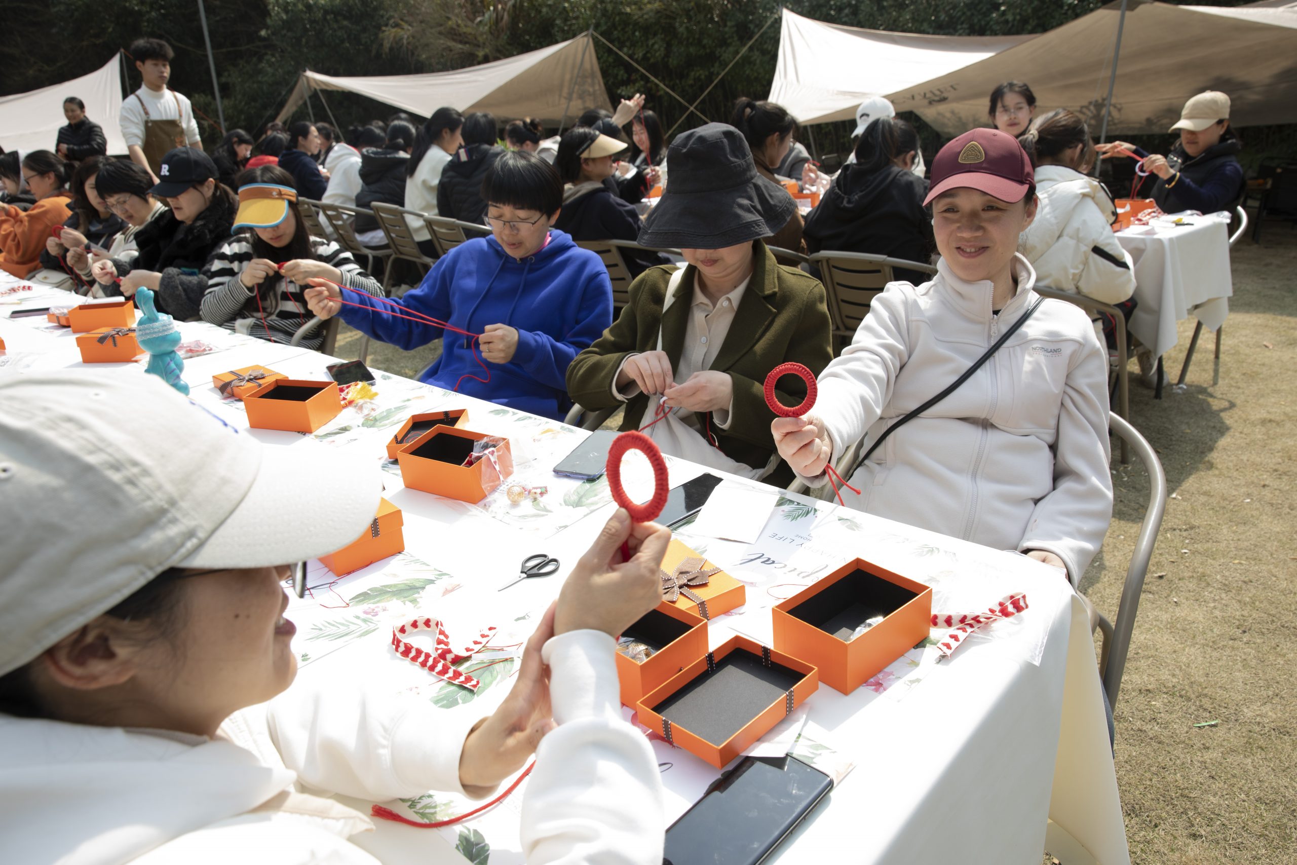 ? ? ? ?完成騎行后,女職工們前往東錢湖上升營地體驗(yàn)圍爐煮茶、手作時(shí)光。帶著迷你卡通小龍的車載掛件,帶給大家龍年的祝福;美味的蛋糕,特調(diào)的奶茶,成為休閑午后味蕾的慰藉;春光、和風(fēng)、茶香和身邊的姐妹們,此時(shí)此刻,就是最美“她”時(shí)光。