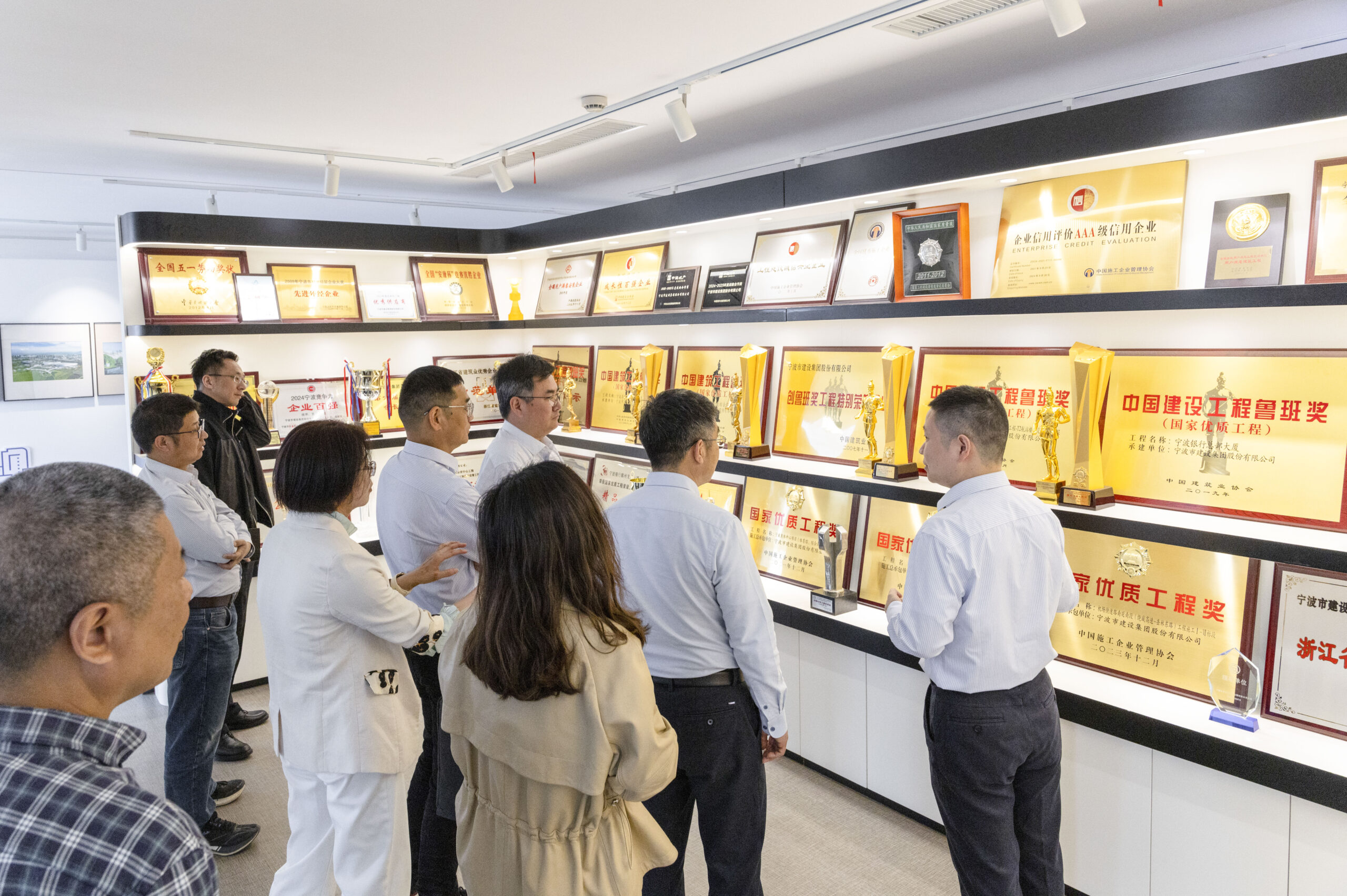 ? ? ? ?調(diào)研組一行首先參觀了寧波建設(shè)集團(tuán)企業(yè)文化展廳,詳細(xì)聽取了公司發(fā)展歷程、重點(diǎn)項(xiàng)目成果及質(zhì)量管理體系建設(shè)情況匯報(bào)。作為寧波市建筑施工領(lǐng)域的龍頭企業(yè),寧波建設(shè)集團(tuán)始終秉持“匠心筑城、品質(zhì)為先”的理念,承建了寧波櫟社機(jī)場、奧體中心、城市快速路等多項(xiàng)標(biāo)志性工程,以卓越的工程質(zhì)量和服務(wù)水平贏得了社會各界的廣泛贊譽(yù)。