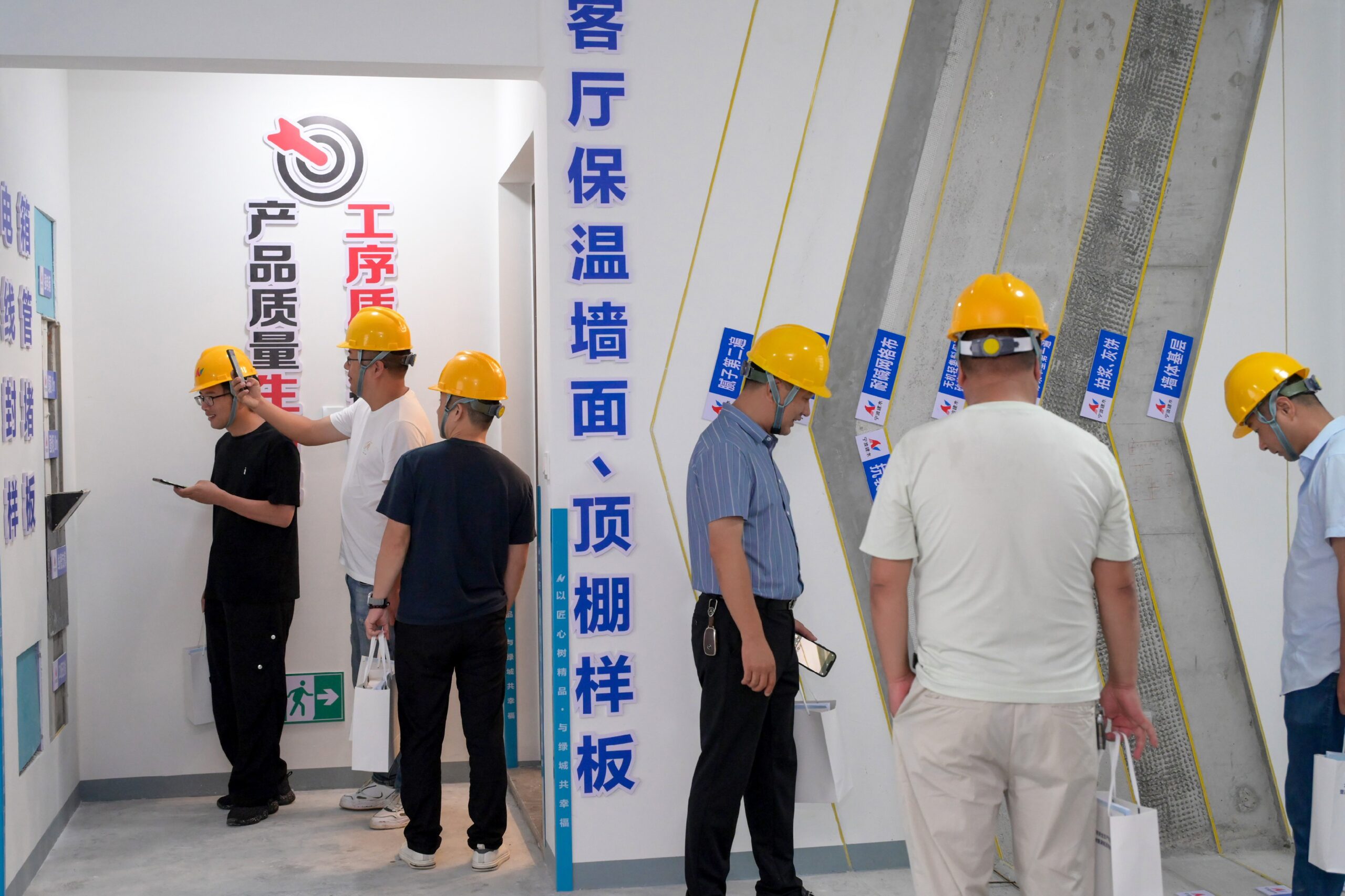? ? ? ?活動現(xiàn)場,參會人員首先觀摩了新潮塘5#地塊項目的安全文明施工標(biāo)準(zhǔn)化建設(shè)成果。項目嚴(yán)格落實(shí)《寧波市建設(shè)工程文明施工管理規(guī)定》,全封閉圍擋配備揚(yáng)塵自動噴淋系統(tǒng),主出入口人車分流設(shè)計及車輛自動沖洗裝置確保場地整潔;材料分區(qū)堆放整齊、垃圾分類處理、雨污分流等措施彰顯綠色施工理念。