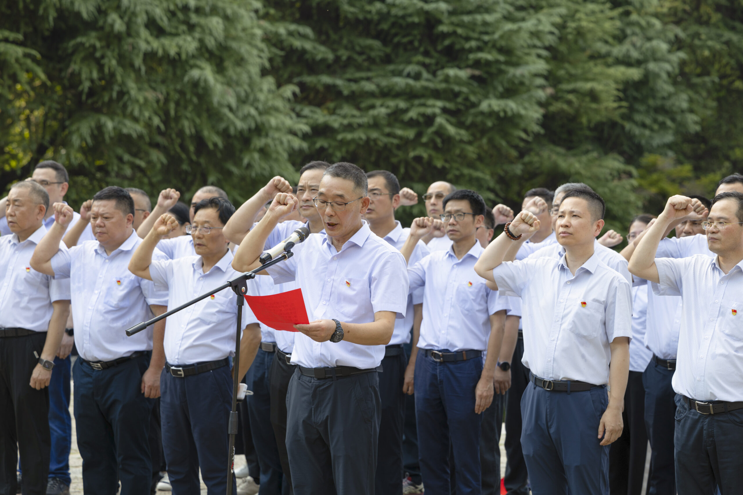 ? ? ? ?隨后,黨員隊伍前往雨花臺烈士陵園。在莊嚴肅穆的烈士紀念碑前,全體黨員列隊肅立,向革命先烈敬獻花圈。集團黨委委員洪波、謝偉光獻上花籃,集團黨委書記裘永祥、副書記卞高勇共同上前整理挽聯(lián),全體黨員默哀三分鐘,以莊重的儀式表達對英烈的深切緬懷與崇高敬意。面對鮮紅的黨旗,黨員們在裘永祥書記的帶領下重溫入黨誓詞,錚錚誓言回蕩在陵園上空,彰顯著傳承英烈精神、踐行初心使命的堅定決心。