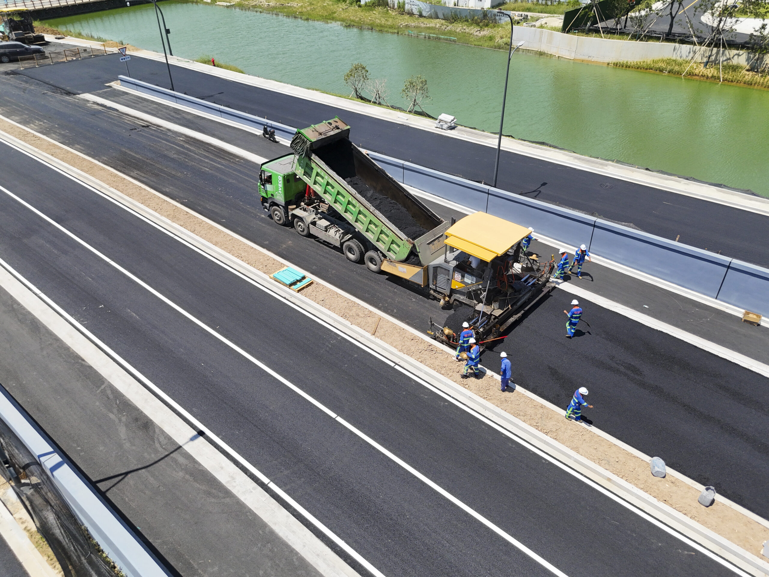? 目前,項(xiàng)目部正在全力推進(jìn)交通標(biāo)志標(biāo)線、綠化景觀等附屬工程收尾施工。