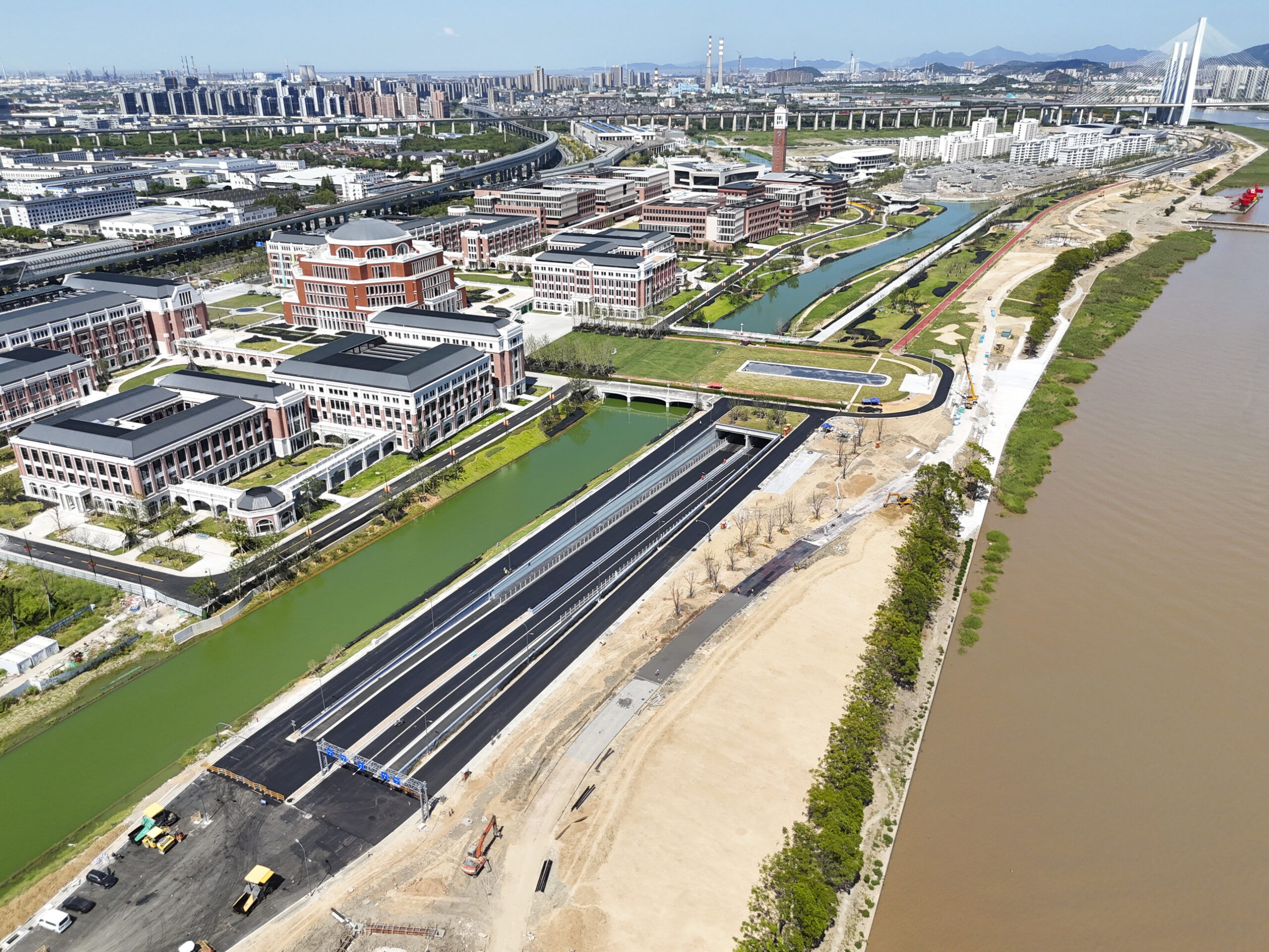 ? ? ?8月25日上午11時(shí)18分,在甬江北岸沿江路II標(biāo)段施工現(xiàn)場(chǎng),隨著最后一車(chē)瀝青混合料平整攤鋪完畢,沿江路(東外環(huán)-金江路)工程施工II標(biāo)段道路工程全面完工,項(xiàng)目建設(shè)正式進(jìn)入最后掃尾階段。